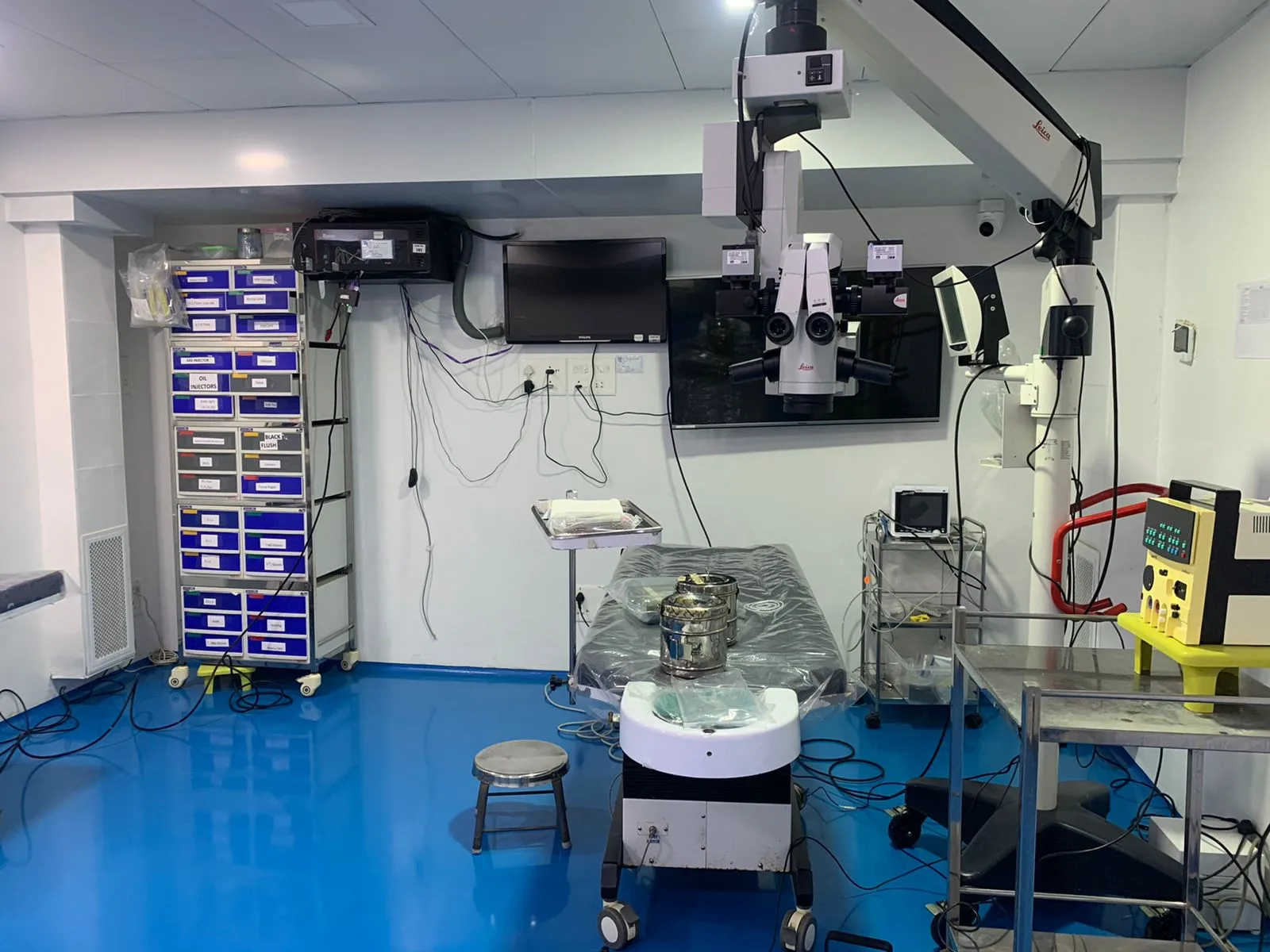 Equipped with Slit Lamp, Keratometer, Autorefractometer, Field Analyzer, Phacoemulsification System, and High-End Surgical Microscopes for precise diagnostics and treatments.